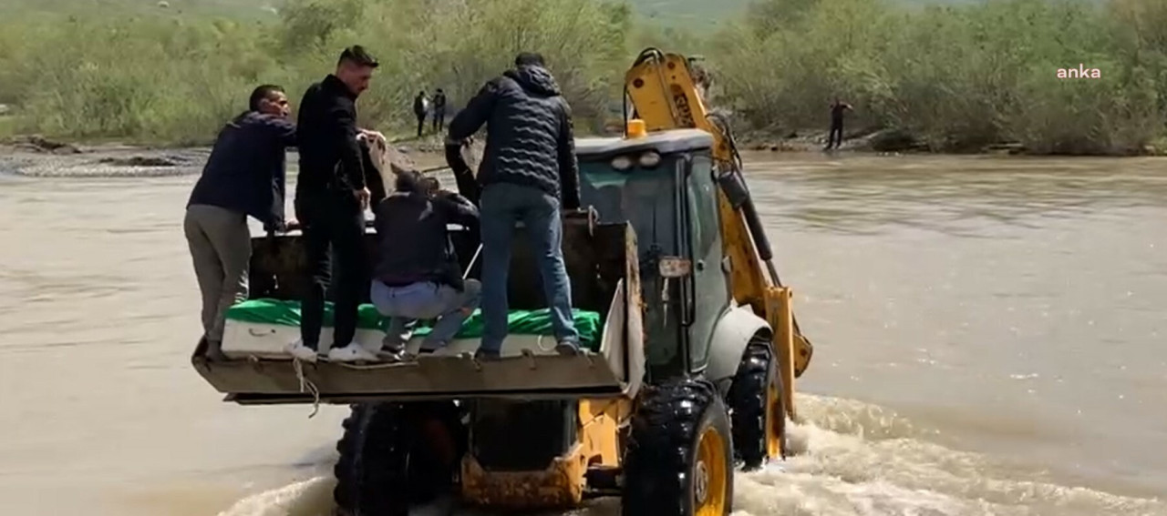Tuzla Çayı’nın azgın sularını iş makinaları ve traktörlerle aşarak cenazelerini defnedenler köprü sıkıntısına isyan etti.