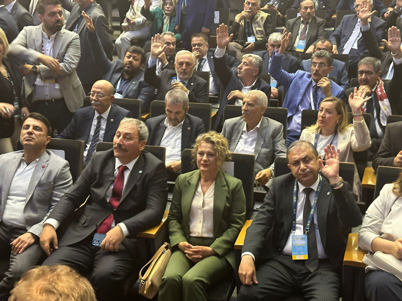 Akşener’in, eşi Tuncer Akşener ile Parti Genel Sekteteri Oktay Vural’ın arasına oturduğu görülürken; adaylar Dervişoğlu ve Aydın aynı sırada hemen yanında yer aldı. Tolga Akalın ise yine ön sıralarda ancak Akşener’e uzak bir noktada oturdu.