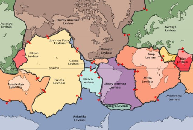 Dünya üzerindeki tektonik plakalar. Depremler, fay adı verilen iç temas yüzeyleri boyunca büyük kaya kütleleri arasındaki ani kayma hareketlerinden kaynaklanır. Depremlerin büyük bir kısmına levha hareketleri sebep olur. Levhalar, yani dünyanın dış yüzey kabuğunu oluşturan sert kabuklar, yerin altında aşırı sıcaklık ve basınç dolayısıyla erimiş halde bulunan kayaçların hareketlerinden etkilenir ve levha tektoniği adı verilen bir yapı oluşturur. Adalar, dağlar, volkanlar bu hareketler sonucu oluşur. İçinde yaşadığımız dünya bu hareketler sayesinde değişim ve dönüşüm geçirerek, sürekli bir yenilenme halindedir. Yenilenme, yüzey mineralojisini değiştirir ve bu da karasal evriminde biyolojik çeşitlilik sağlar. Tektonik süreçlerin doğal afetleri tetikleyen yıkıcı sonuçları olur fakat faylar ve kırılmalar aynı zamanda insan yerleşimleri için çekici koşullar üretmişlerdir.