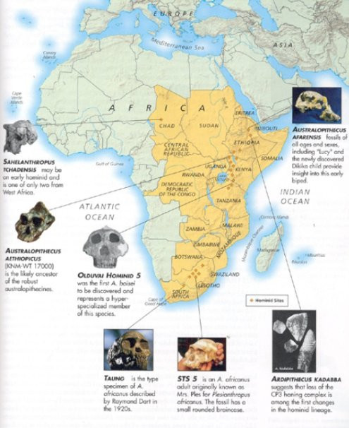 Bulunan bazı insan atası formlarının kıta üzerindeki konumu. TEKTONİK AKTİVİTENİN EVRİMSEL AVANTAJLARI